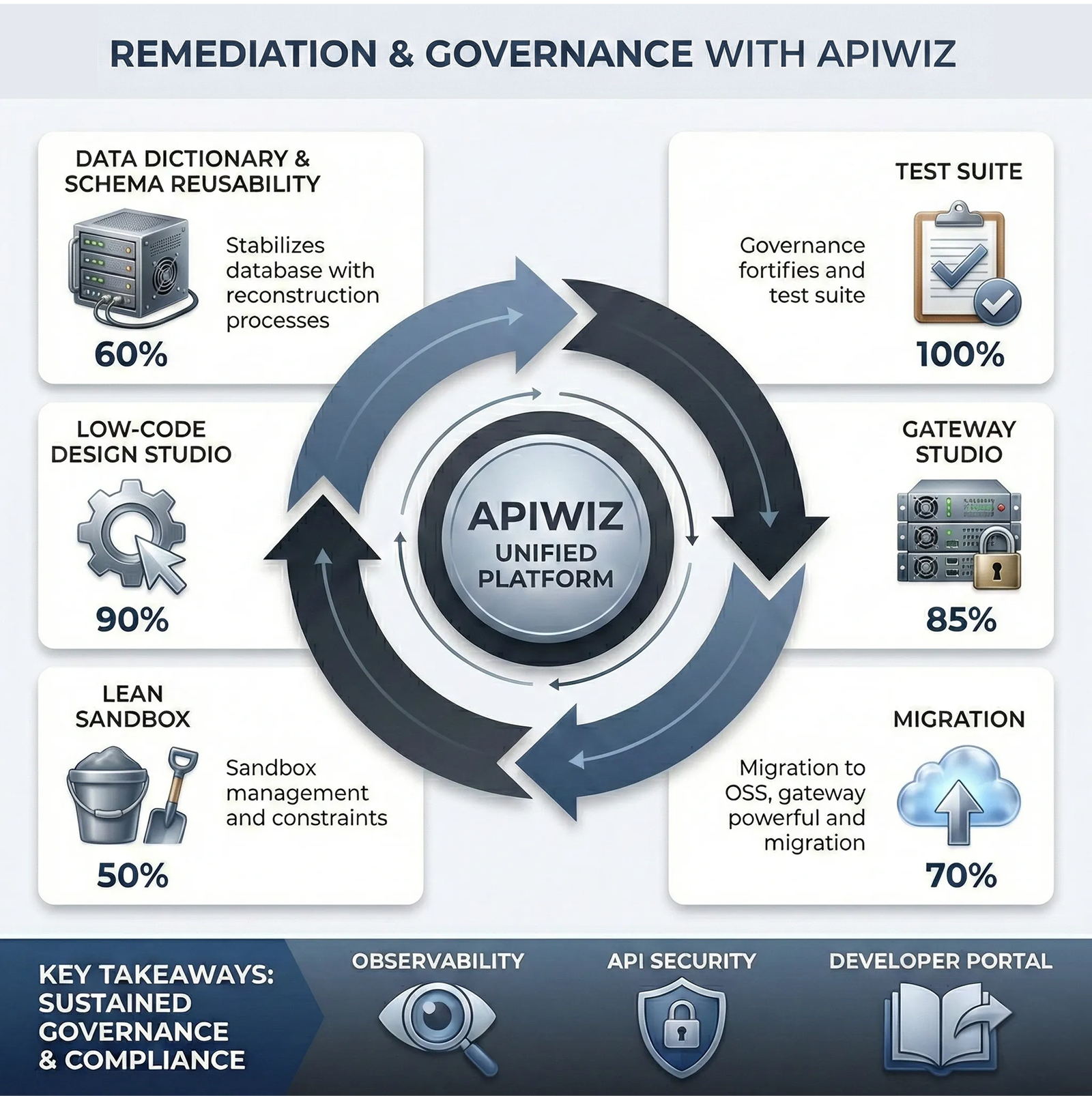 For sustained governance and compliance, APIwiz enabled continuous monitoring, security enforcement, and operational control