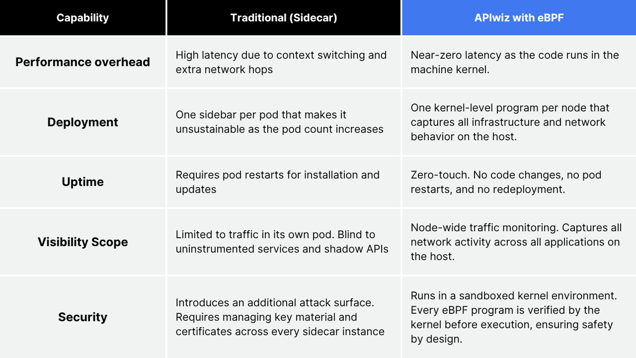 Difference between using a Sidecar proxy and an eBPF-base observability tools like APIwiz: